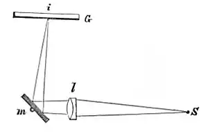 spark was absolutely instantaneous, its image thrown upon the ground glass would be exactly the same, whether the mirror was motionless or was revolving at the highest speed. But, if the spark had an appreciable duration, its image would be prolonged or drawn out into a streak, the length of which must depend upon the time of discharge. The rate of the mirror's rotation being known, also the distance, m i, and the length of the streak, it was easy to calculate the total duration of the spark.