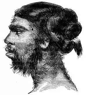 "She was of very dark complexion," says he, "short of stature and well proportioned; her hands and feet were small, her nails yellow; she had a beautiful breast. Her tresses were very long, deep black, and coarse as horse-hair, and she had a strong beard. Her forehead was overgrown with hair, down to the bushy eyebrows, which over-shadowed her soft, humid eyes within their border of black lashes.