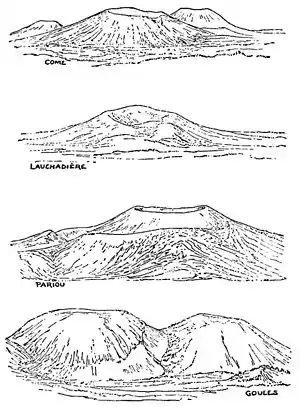 Fig. 3. Our ash-bluff is indeed only a part of one of these parallel lava ridges; when traced north and south lava may be found lying on the ash-bed. Lamentation is higher, because its lava-flow is much thicker than that in the ash-bed ridge, and therefore has not been worn down so low. On the back of these flows, at one point and another, may be seen the slaggy, bubbly surface of the lava, like that poured out of Vesuvius or any other modern volcano; but these ancient lavas have been deeply buried in