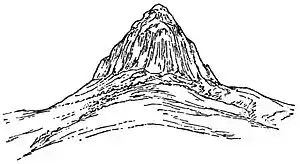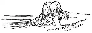 Zuñi plateaus, Dutton describes numerous relatively small isolated buttes or sharply conical hills, steeper sided than volcanic cones, of a different profile, and without the crater at the top. They consist of dense lava, not in layers spread out from a central vent upon the surrounding surface, but in a solid mass with
