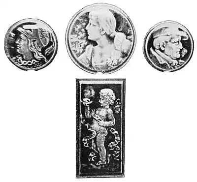 The American Encaustic Tiling Company, of Zanesville, Ohio, is the most extensive establishment of the kind in the United States. It manufactures artistic and encaustic tiles, and has placed upon the market some fine pieces of relief work, twelve by eighteen inches in size among the subjects of which we have seen some female water-carriers of Grecian type. This factory also