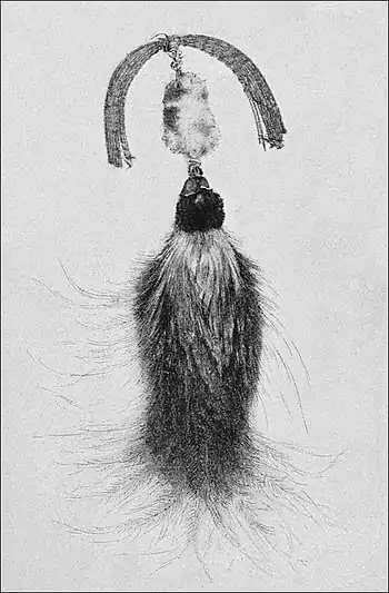 Fig. 8.—Head-dress of Bird-of-Paradise Feathers. South Sea Islands. as with ourselves, and the bead so highly prized today may be worthless to-morrow. In Africa iron beads are always good, but glass beads fluctuate. One author tells us "they prefer as beads the 'mandyoor'—long polyhedral prisms as large as a bean and as blue as lapis lazuli." But woe to the trader who took a stock of mandyoor there to-day! They might be a drug on the market. It may seem as if we have been too detailed in describing all these savage and barbaric decorations. We have simply aimed to show how varied in material and how diversified in form and use such ornaments may be. To show the profusion of ornament worn in some cases, and to illustrate the amount of discomfort which one will willingly endure for the sake of display, we quote a few descriptions: