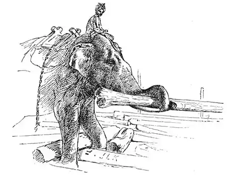 Fig. 9.—Elephant lifting Teak Logs (Burmah).