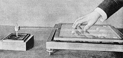 The Automatograph.—When in use a screen is interposed concealing the apparatus from the subject. There is also a sheet of paper on the upper glass plate, which has been removed to show the glass balls.
