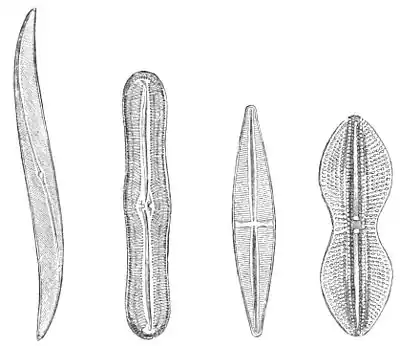 | Fig. 1.—Pleurosigma Formosum. | Fig. 2.—Pinnularia Major. | Fig. 3.—Stauroneis Phœnicenteron. | Fig. 4.—Navicula Didyma. |