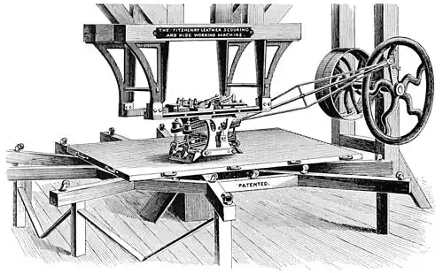 Few, if any, of the pioneer tanneries remain. That, however, which used to belong to Mathias Ogden and Colonel Oliver Spencer, at Elizabethtown, N. J., in 1784, was probably a good example of the original type. That consisted only of forty or fifty oblong boxes, without cover or outlet below, sunk into a bed of clay near a small stream. The boxes did duty as vats and leaches. On one side of them stood an open shed which fronted a half-dozen more boxes, the "limes" and "pools" of the beam-house, while on the other side was a circular trough, made of hewed timber, fifteen feet in diameter, in which the bark was crushed by alternate wooden and stone wheels propelled by two old horses. It was essentially a home-made plant. The wind swept through it without hindrance, and the rain and snow beat un-