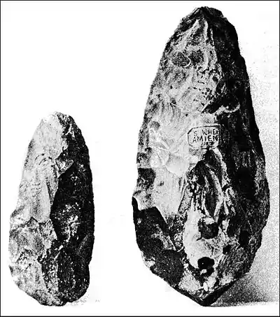 warded it to me, when its exact resemblance in form and finishing to an implement which I have in my own collection, that was obtained by Dr. Evans, of London, at Amiens, France, greatly impressed me. I forwarded it immediately to Prof. H. W. Haynes,