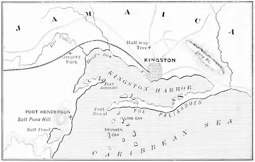 After a six-days' voyage we landed safely at Port Henderson, on the north side of Jamaica. Here we took carriages for a drive of sixty miles across the island to Kingston, its capital. The road