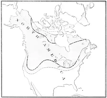 The shaded portion shows the distribution of the beaver eater while the lines _._._ mark the northern and southern limits of the beaver.