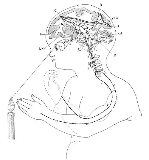 Fig. 10.—The course of the several impulses is indicated by the arrows. An explanation of the figure is facilitated by reference to Fig. 5.