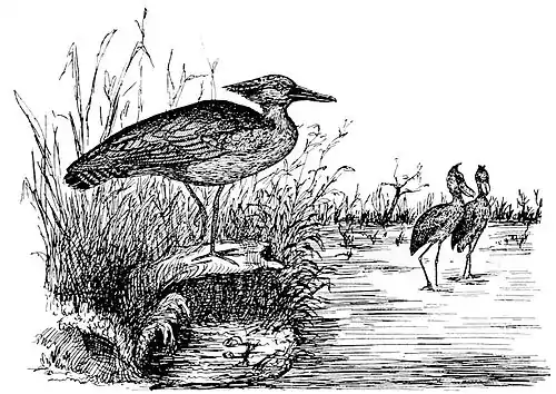 Fig. 7.—The Hammerhead (Scopus umbretta), with a Pair of Shoebills in the Distance {B. rex).