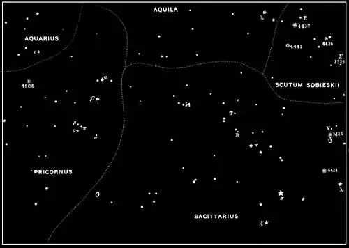 Passing near to the region covered by map No. 13, we find the remaining portions of the constellations Sagittarius and Scutum Sobieskii. It will be advisable to finish with the latter first.