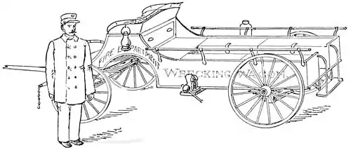 All departments are equipped with supply wagons that resemble hose wagons in their construction and carry baskets of coal, extra hose, etc., to every fire. In 1879 the New York department built a wrecking truck. The Boston department built