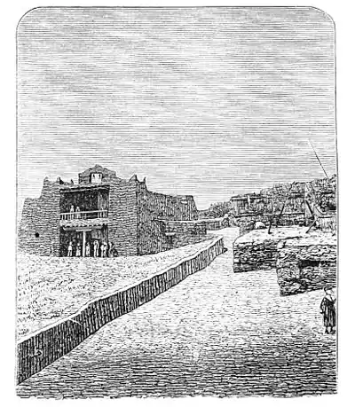 marros of the Jews, only the latter are the harder. On inspecting the house, we found each apartment whitewashed, both walls and ceiling, well ventilated, and in every respect neat and clean; exceeding good order seemed to prevail in the domestic appointments throughout the establishment. The furniture consisted of but few articles, these being principally sheep-skins, Navajo blankets, and water-vessels, the latter used also for cooking-purposes. These vessels are of their own manufacture, of burnt earth, and, in many instances, highly embellished with fanciful designs of neat pattern, the figures being either brown or black, on a ground-work of white. No beds are seen in the house, blankets alone serving as such; the occasional bird-skin, hanging by a string in some corner, serves as a charm. Live eagles and sparrow-hawks, tamed by these people, are seen about almost every house,