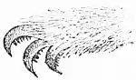 Spider's Claw, enlarged.It has four pairs of legs, a pair of palpi, and a pair of mandibles. The legs are jointed, and on the last joint there are three claws. The palpi are used as feelers and to hold the food. The breathing apparatus of the spider is a combination of lungs and gills. It has glands containing poison which lie partly in the head and partly in the basal joint of the mandibles. There is a tiny opening in the claw on the mandible, out of which the poison flows when the spider captures its prey. It has eight eyes. The spiders are classified largely by the different arrangements and grouping of the eyes. Some have them in one or more clusters, some in rows, and others scattered about. They appear to be able to see as well by night as by day. Near the end of the body are the spinnerets—two, three, or four pairs—out of which the silk comes for weaving the webs, nests, and cocoons.