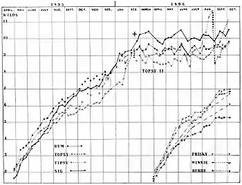 - ↑ For the suggestion as to the proper physiological limit, I am happy to acknowledge my indebtedness to Mrs. Hodge. At the time when Tipsy and Bum were first intoxicated, the only time they have been intoxicated, Mrs. Hodge not only suggested the physiological limit, but went to considerable pains of argument to turn me from my avowed purpose of "getting the greatest physiological (?) effect in the shortest time." This has been a prime defect of similar work in the past, and whatever of value may attach to the present research I consider as mainly due to this suggestion.