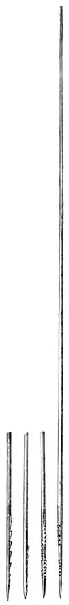 Papuan Spears. In some tribes every father of a family voluntarily submits to one of these radical operations after the birth of his second or third child. Personal sacrifice for the public good could surely not go further than this.