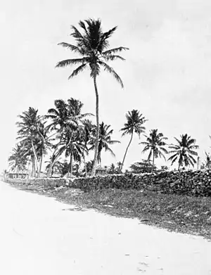 Cocoanut Palms. with a red stripe down the side, white linen jackets, and white pith hats. Boys of every age and various cast of features, showing their gleaming white teeth, begged to take our parcels to the hotel. As we sat in the cage-like shed which serves as a customhouse we were at once impressed with the sense that the island of New Providence was indeed a foreign land, most picturesque, fascinating, and distinctly tropical, with its tall cocoa palms here and there waving above the other trees and the house-tops. Our attention was particularly attracted to the trees about the wharf and along the main street. At first we thought they were magnolias, and it was hard to believe they were not members of that family, so striking a resemblance do they bear with their large, shining leaves. They are known as almond trees, the Demerara almond (Terminalia catappa), but are not the almond of commerce.