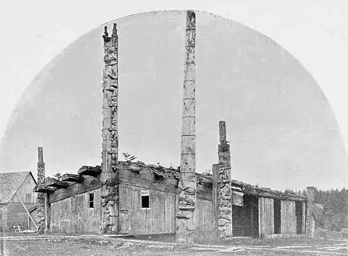 The totem poles drop one by one; the great massive houses of the old times, with their mighty cedar beams, slowly succumb to the wind and the weather; the old grave posts totter and fall,