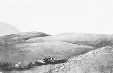 Fig. 9.—The Divide of the Isthmus of Tehuantepec (view on larger scale than in Fig. 8), showing the northern end of the geological canal dissecting the divide to a depth of about one hundred and fifty feet. Knob to the left represents the end of a ridge rising out of the old geological strait.