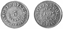 $5 gold piece. Carolina gold; 20 carats, 140