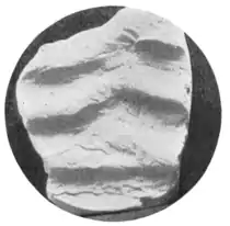 Fig. 5.—Ripple Marks in the Volcanic Dust. Reduced to 1/4 diameter. as perfect as if it had been taken down by an instrument when the shower occurred. It may be only local in its significance, for it shows the direction of the wind at this particular place alone. The wind may have been somewhat deflected from the general direction by local topographic peculiarities, though these appear to have been of small importance. In any case, the old legend is quite interesting to read, being, I believe, the only geological record ever found of the passing of a cyclone over the United States.