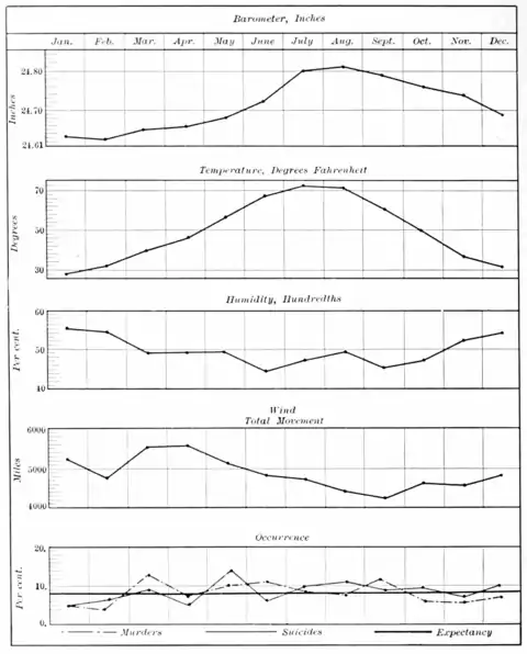 per cent of crimes of each class committed under the definite meteorological condition indicated.