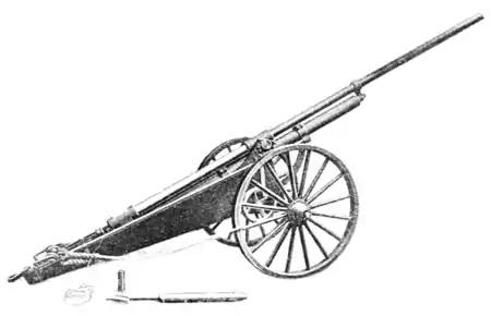 Sims-Dudley Pneumatic Gun, in Battery.