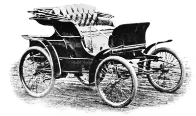 tails of their designs. In the phaeton shown in Fig. 13, a single-cylinder motor is used, and it is so arranged that it can run at different velocities, so that no variable speed mechanism is required, except a single train of gears, which is thrown into action when running uphill. The motor