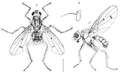 abundant of the flies reared were Helicobia quadriselosa, Sepsis violacea, Nemopoda minuta, Limosina albipennis, Limosina fontinalis, Sphærocera subsultans and Scatophaga furcata, while the most abundant forms captured were Phormia terranovæ and Borborus equinus. In a second class, not including the most abundant forms reared and captured, but including species which were rather abundantly found, were Sarcophaga sarraceniæ, Sarcophaga assidua, Sarcophaga trivialis, Musca domestica (the common house-fly), Morellia micans, Muscina stabulans, Myospila meditabunda, Ophyra leucostoma, Phorbia cinerella, and Spharocera pusilla, of the reared series, and Pseudopyrellia cornicina and Limosina crassimana among the captured series. All the others of the seventy-seven species were either scarce or not abundant.