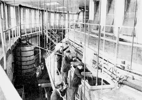success of the institution. Subdivision of the work makes possible a routine of duties that proceeds as regularly and orderly as on board a man-of-war, and this is necessary, for now and then the sinuous eel plays his pranks and stops some outlet, threatening the institution with flooding.