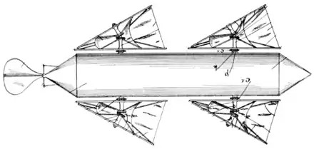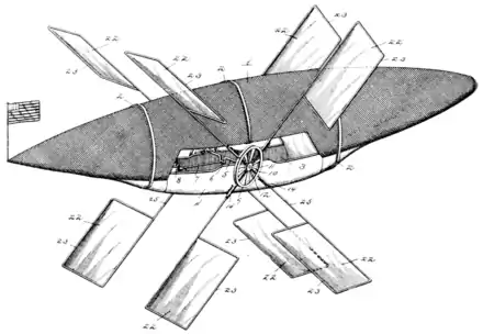 "Three machines only have been built, varying somewhat in form of spindle and extent of surface handled. As used at present, the screw, formerly fifteen feet diameter, has been reduced to eight feet, and the wings and rudder abandoned, the universal-jointed aeroplanes on each side haying proved in every way superior for all evolutions.