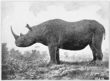 the progenitor of many of the finest dogs of his race in America, breathed his last in Pittsburgh, and by happy fortune his skin was preserved and came into the possession of the Museum. Many of the smaller groups of birds delineate accurately the habits of the more familiar species and are accepted as masterpieces of the taxidermic art. The mammals are represented by small, but important, collections. One of the recent acquisitions is that of a specimen of Rhinoceros simus. This large mammal, which is, with the exception of the elephant, the largest of terrestrial quadrupeds, is believed to be on the verge of extinction. A few years ago the Hon. Cecil Rhodes secured a specimen by purchase, which he presented to the South African Museum at Cape Town. Another was secured by the British Museum, a third specimen was acquired by the Hon. Walter Rothschild for his private collection at Tring, and a fourth was purchased by the Imperial Academy of Sciences