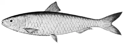 In allusion to the small sardine being caught almost wholly by means of bait consisting of fish roe (rogue), the French call it sardine de rogue, in contradistinction to the large fish which is taken without bait by-means of drift nets, and hence called sardine de derive. Modern French writers on the sardine fishery seem averse to acknowledging the specific identity of the sardine and the pilchard; some even fail to explain or suggest the relation between the large and small fishes of the west coast of France.