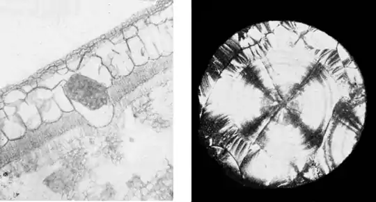 | Fig. 15. Crystal of CACO3 in India Rubber Plant, 120 Diameters. | Fig. 18. Brucine Crystal. 70 Diameters. Polarized Light. | |