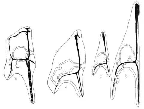 Fig. 9. a. Larva of Sphærechinus granularis. 6. Larva of Echinus microtuberculatus. c. Hybrid of Sphærechinus egg and Echinus sperm, showing blended characters, d. Fragment of Sphærechinus egg, fertilized with an Echinus sperm, showing paternal characters only.