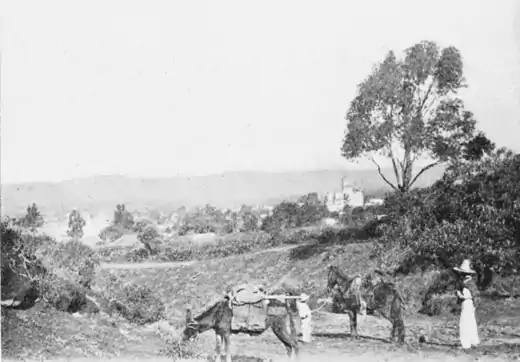 hills rounded and piled up over the mountain's base. A well-marked trail led through the fields, some filled with black stalked corn, some bristling with thousands of that valuable cactus, called maguay in Mexico and century plant in the United States, and some entirely barren. A horseback rider with a revolver at his belt came dashing through the thicket and asked a drink of the guides. Though they were going on a three days' trip and had but a quart of wine between them they handed the man their bottle, how unwillingly I do not know. Possibly the beggar was the proprietor of the hacienda through which we were passing and took that means to levy toll. After two hours' walking we reached the forest belt and spent the remainder of the day within it. As in all mountain regions here the most common and stately trees are pines and spruce. The pines flourish from nine thousand feet