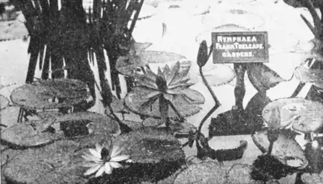 The central garden consists of a sunken parterre immediately facing the main gate, through which most visitors enter the grounds; a series of regular beds separated by low hedges, lying to the left and centered about a pavilion from which a bird's-eye view of the whole is had; and a group of plant houses, with lawn and bed surroundings,