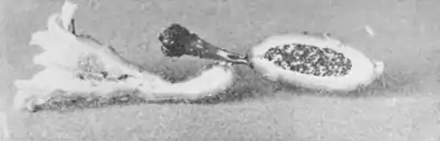The saguaro flowers in June, producing at the top of the stem a large cluster of tubular white petaled flowers in which are found hundreds of small beetles and wasps, apparently the chief agents of pollination. While the fruit is developing, the shriveled flowers, which remain