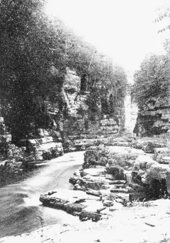 Fig. 12. Ausable Chasm, whose zig-zags are due to faults and joints. The walls are hard Potsdam quartzite.