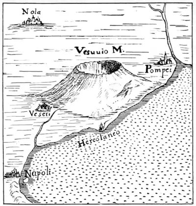 Fig. 4. Attempted Restoration of the Parthenopian Volcano as it appeared in Strabo's Time. After Pellegrino, 1651. (The site of Veseri is conjectural.)