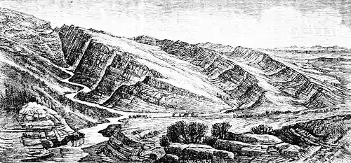 The first explanation suggested is, that it followed a previously-formed fissure through the range; but very little examination will