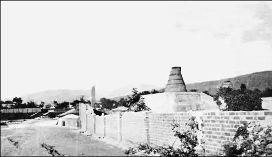 Fig. 7. Looking North to Landing Place at General Penitentiary. Massive walls cracked;;a section of the eastern wall was demolished. Upper part of chimney overthrown to east.
