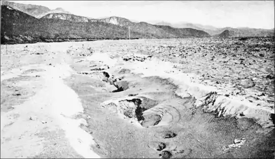 The speed of the various waves in this earthquake can only be approximated. During a slight shock that occurred afterwards, of about one third the intensity, from an interrupted telephone conversation from Kingston to Port Antonio, it was estimated that the wave traveled about two thousand feet per second. As yet no data have been available concerning the breaking of the cables, and as to the exact time or speed as marked by such fractures. The Panama cable was broken in two places, one four miles and the other some twenty miles offshore from Bull Bay, but so covered was it with débris that a couple of miles