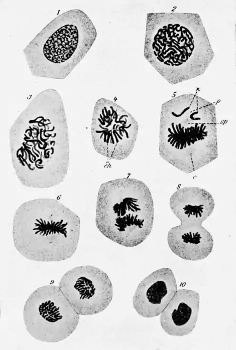 Fig. 3. Cells from the Mouth (Oral Epithelium) of the Salamander, to show the phases of cell division or mitosis.