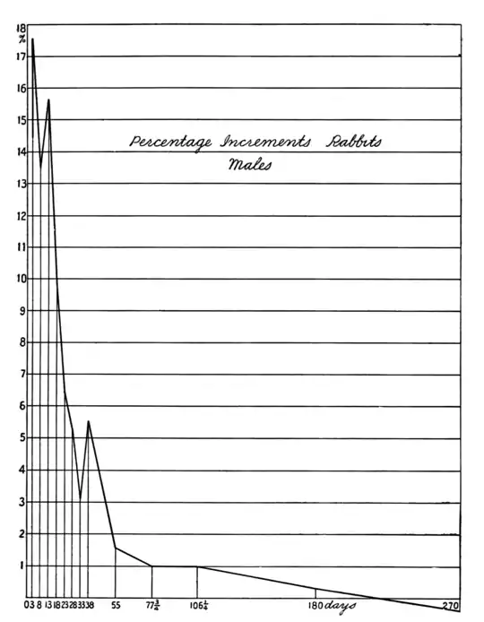 Fig. 28. Curve showing the Daily Percentage Increments in Weight by Male Rabbits.