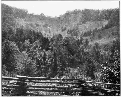 The Shape of the Cloudland Mountain, between Green Cove and the Head of Bear Creek, showing Land Slides in Pasture. These were made in the storm of May 21, 1901, and covered from 100 to 500 square feet. Mitchell Co., Cal.