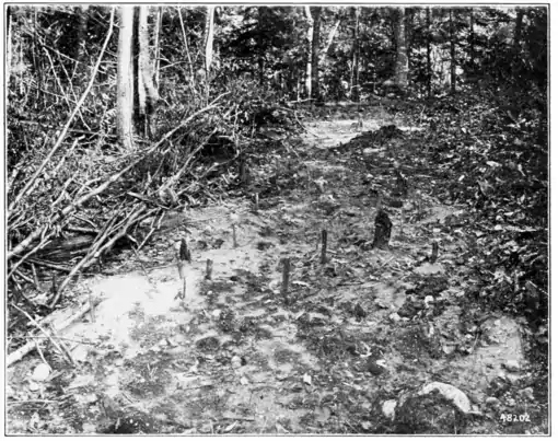 A Serious Fire was stopped at this Lane. It is 60 feet wide, and was hastily cut through a Dense Sapling Stand. Litter scraped up on the right. Beede, Adirondack Mountains, N. Y.