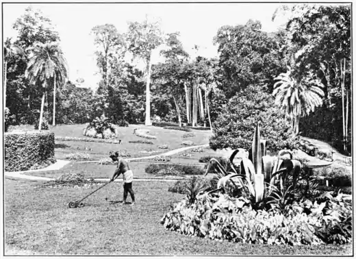 Fig. 8. A portion of the Garden, with formal beds and wide expanse of lawn arranged to please European tourists. From a photograph by Macmillan kindly furnished by the director.