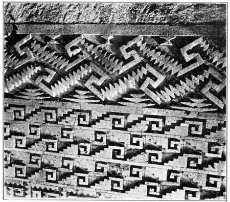 inserted above these two entrances. The rooms beyond the entrance are narrow and elaborately ornamented with a pattern similar to that in the Hall of Mosaics.